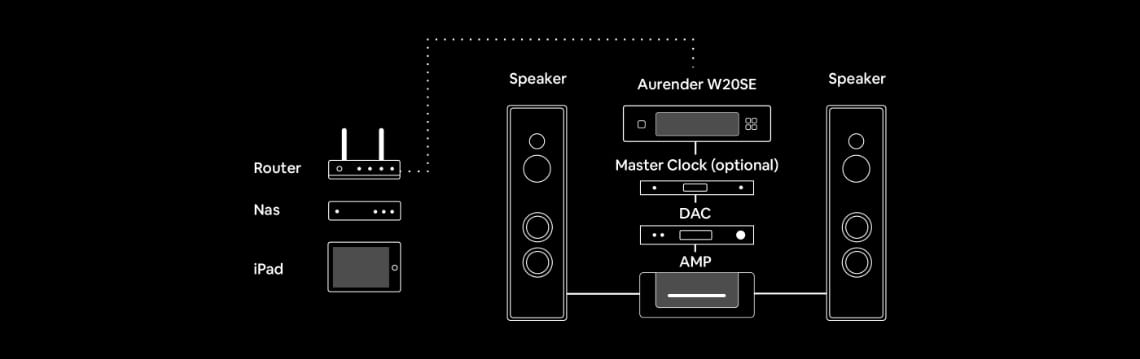 Od premiery w roku 2013, Aurender W20 zajmował na rynku miejsce ‘serwera muzycznego, według którego oceniane są inne’. Opracowana w roku 2019 udoskonalona i poprawiona wersja tego serwera W20SE [Special Edition] podnosi poprzeczkę jeszcze wyżej zarówno w kwestii wygody obsługi, jak i jakości brzmienia. Aurender W20SE to urządzenie z wyboru instalowane w najlepszych systemach audio na świecie. Zaprojektowany do współpracy z przetwornikami cyfrowo-analogowymi najwyższej klasy, W20SE jest jednym z kilku dostępnych serwerów umożliwiających współpracę z zewnętrznym zegarem, co jest standardem wśród profesjonalistów i w studiach nagraniowych. Dodatkowo, oparty o dwa przewody tryb przesyłania danych AES/EBU – spotykany w referencyjnych przetwornikach – pozwala na osobną transmisję sygnału dla prawego i lewego kanału celem dalszej poprawy brzmienia. Ale nawet bez stosowania zewnętrznego zegara i podwójnego wyjścia AES/EBU, bateryjny zasilacz W20SE zapewnia olbrzymie obniżenie poziomu szumów prowadzące do absolutnie cichego tła. Zaś dysk SSD pojemności 4TB wraz z pamięcią podręczną SSD pojemności 1TB czynią z W20SE idealne rozwiązanie do przechowywania nawet największych kolekcji muzyki.