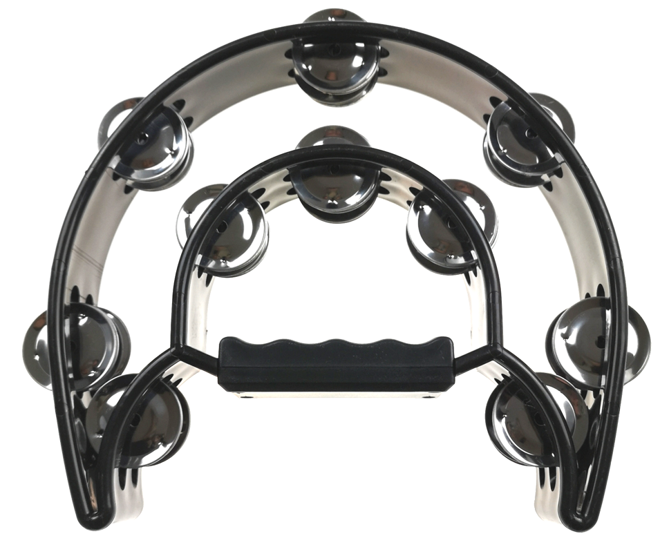 - tamburyn z podwójnym rzędem dzwonków ma 20 par dzwonków, co sprawia, że ma wyraźniejszy i jaśniejszy dźwięk niż tamburyn jednorzędowy