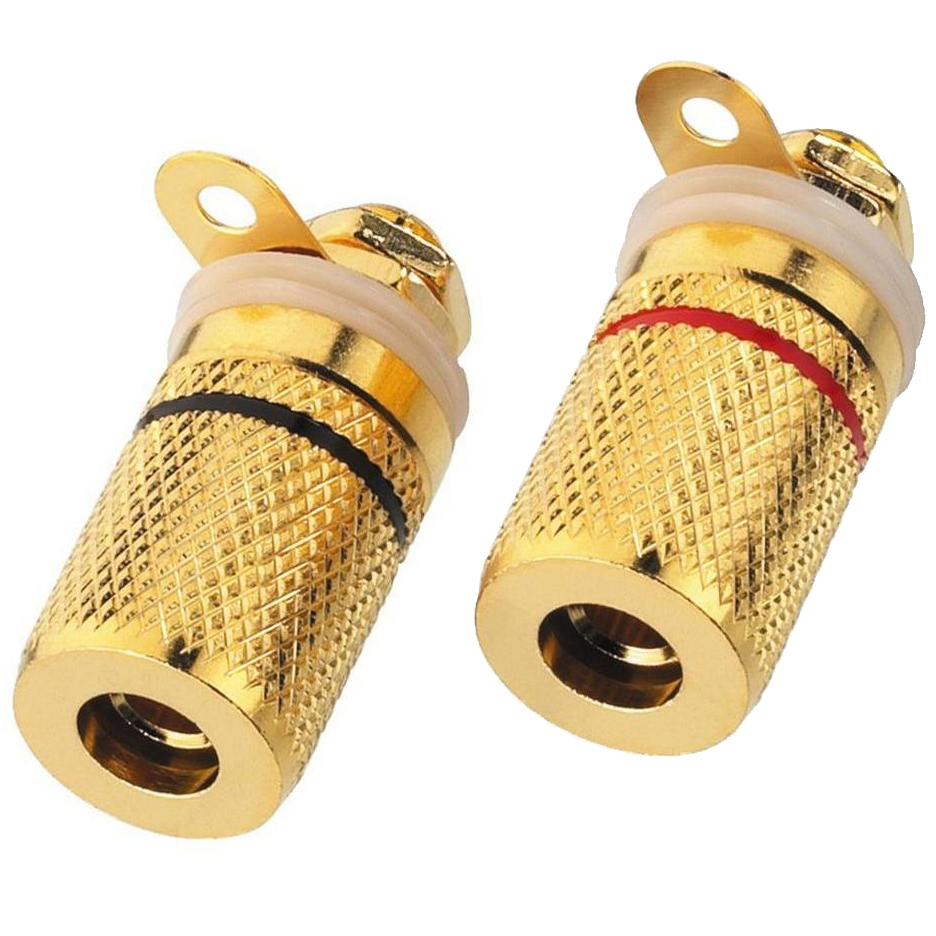 Terminal głośnikowy jest pozłacany, wykonany z dbałością o każdy szczegół, nieizolowany. Terminal dysponuje możliwością przykręcenia przewodu lub wykorzystania wtyku.