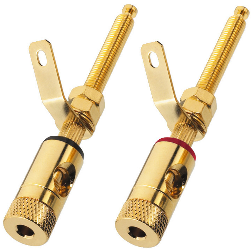 Terminal głośnikowy jest pozłacany 24-karatowym złotem, wykonany z dbałością o każdy szczegół. Terminal dysponuje możliwością przykręcenia przewodu lub wykorzystania wtyku. Służy do obudów o grubości ścianki do 33mm.