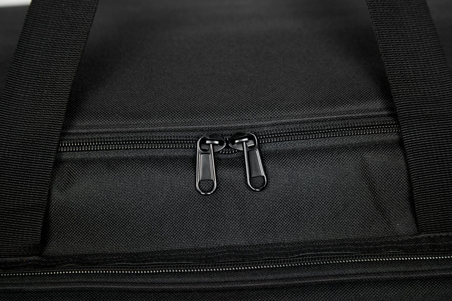 Torba wyróżnia się przemyślanym rozmiarem 65x35x43 cm, który pozwala na wygodne przechowywanie różnorodnych elementów Twojego zestawu DJ-skiego, takich jak kontrolery, miksery, kable czy słuchawki. Jej lekka konstrukcja – zaledwie 1,85 kg – sprawia, że transport sprzętu na koncerty, próby czy eventy staje się wyjątkowo prosty i komfortowy. Minimalistyczny i profesjonalny design torby to połączenie funkcjonalności i estetyki. Ciemna, elegancka kolorystyka nadaje jej nowoczesnego charakteru, który doskonale współgra z każdym zestawem DJ-skim. Solidne zamki błyskawiczne i dobrze przemyślane uchwyty zapewniają wygodny dostęp do sprzętu, jednocześnie gwarantując bezpieczeństwo podczas przenoszenia.