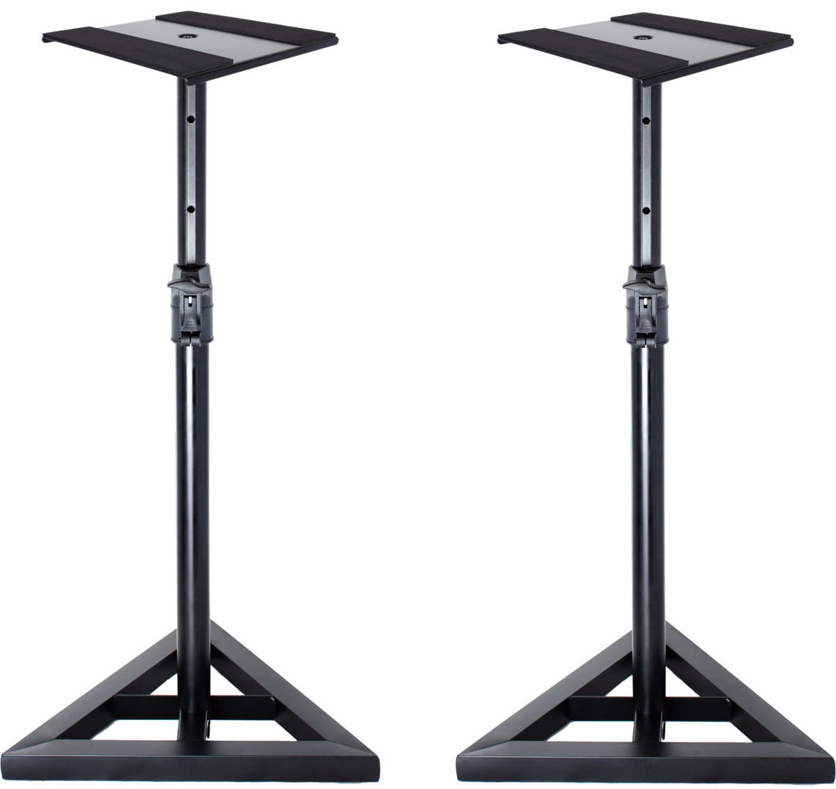 Zestaw dwóch stojaków pod głośniki studyjne od Mozos to gwarancja udanego zakupu. Uniwersalne zastosowanie w zakresie głośników 4-8″. Bardzo stabilna, trójkątna podstawa z możliwością montażu albo plastikowych stopek lub metalowych kolców. W zależności od podłoża, dokonaj wyboru i samodzielnie zamontuj odpowiednie nóżki. Statyw pod kolumny MSS3 to również duża regulacja w zakresie wysokości. Z pewnością znajdziesz odpowiednią wysokość do swojego miejsca pracy lub zabawy. Co więcej w tej wersji statywu zastosowano pół-automatyczny system regulacji. Nie trzeba wkręcać i wykręcać śrub. Wystarczy nacisnąć odpowiedni przycisk, wyregulować wysokość i to tyle. Sprzęgło samoblokujące umożliwia prostą regulację do 110 cm.
