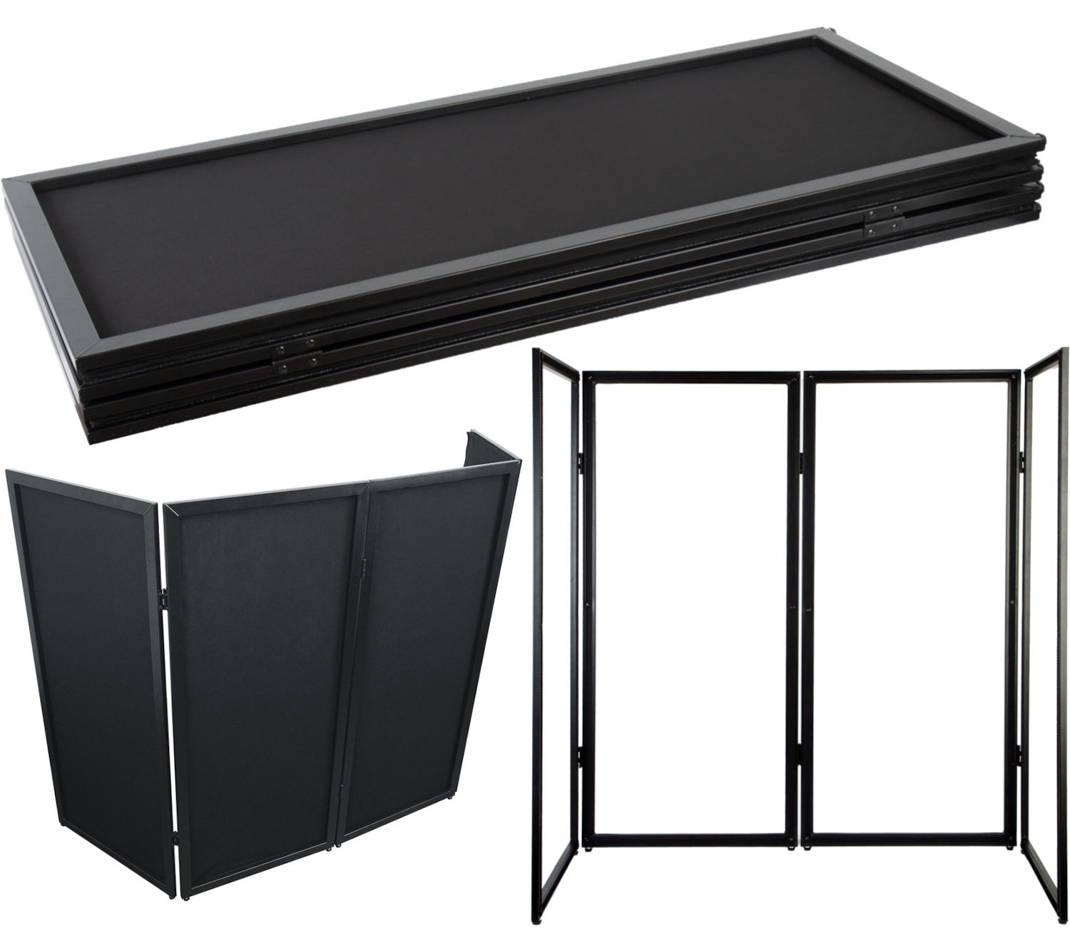 Mozos DJ-FC to praktyczna i stylowa osłona, która pozwala stworzyć czyste i profesjonalne stanowisko DJ-skie w kilka chwil. Składa się z czterech paneli o wymiarach 50 × 112 cm, które razem zapewniają pełne zakrycie sprzętu, kabli i akcesoriów, nadając stanowisku schludny, nowoczesny wygląd. Pokrycie z eleganckiej, czarnej tkaniny doskonale prezentuje się na każdej scenie, a solidna stalowa rama zapewnia stabilność i trwałość nawet przy częstym użytkowaniu na eventach, weselach, koncertach czy konferencjach. Całość waży zaledwie 9,5 kg, dzięki czemu osłona jest łatwa do przenoszenia, rozstawienia i składania, co doceni każdy DJ i firma eventowa.