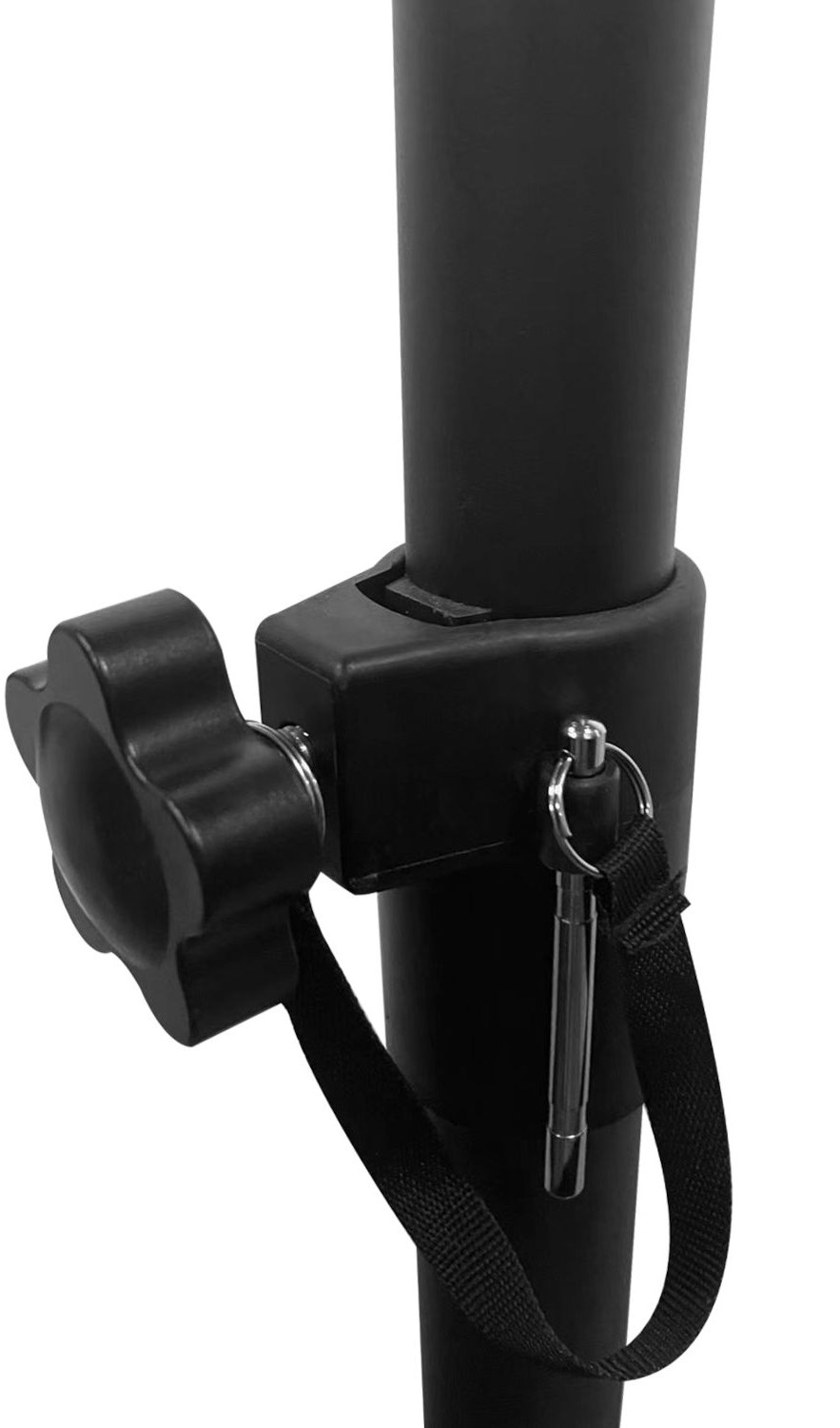 Trwały, mobilny stojak możesz z łatwością zabrać ze sobą na wszystkie występy i nagrania. Maksymalna wysokość po pełnym rozłożeniu sięga aż 2 metrów! Profesjonalny statyw może być używany na co dzień w studiach nagraniowych i innych scenach muzycznych. Łatwo regulowana podstawa może być złożona bez wysiłku w celu transportu. Nasz statyw również świetnie sprawdza się w roli statywu do kolumn estradowych. Próżno szukać drugiego takiego rozwiązania na rynku o takiej stabilności i cenie. Odpowiednia średnica rur umożliwia bezpośredni montaż do uchwytu kolumny lub w przypadku jej braku można zastosować montażową półkę która znajduje się w zestawie. Podwójna blokada (śruba + bolec) gwarantuje poczuje bezpieczeństwa twojego sprzętu audio.