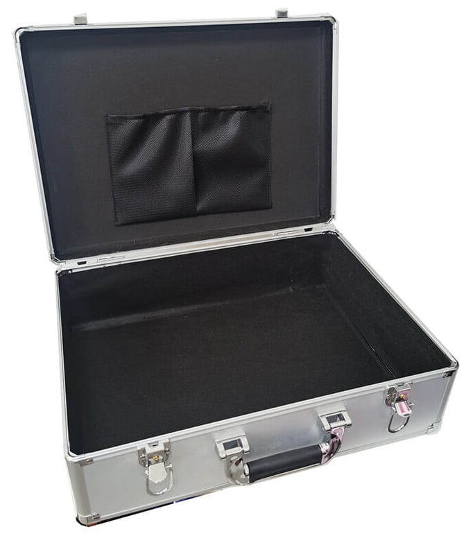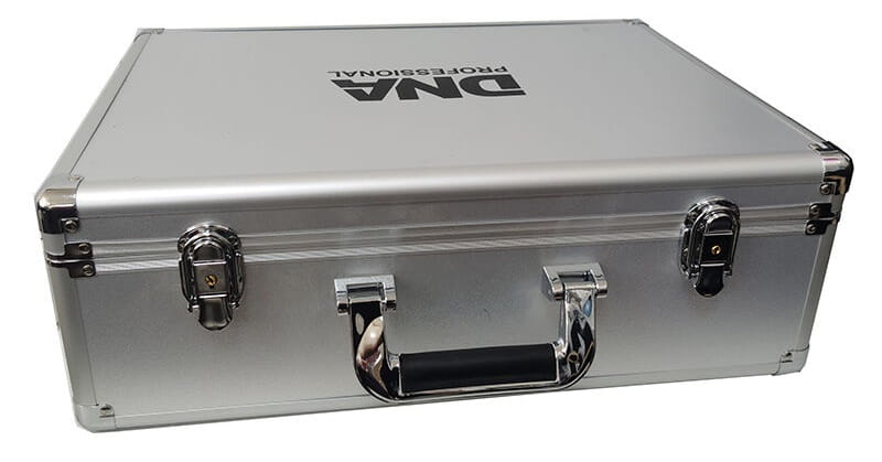 Walizka została wykonana z lekkiej, a także ✅ wytrzymałej, płyty pilśniowej z domieszką tworzywa sztucznego (PVC), która została estetycznie powleczona warstwą aluminium. Case został wyposażony w poręczny uchwyt, dwa zatrzaskowe, zamykane na klucz zamki oraz wewnątrzna kieszeń. Krawędzie walizki zostały wzmocnione dodatkowymi listwami i okuciami. Jednostronnie otwierana pokrywa i dno case'a DNA zostały wyściałane ✅ delikatną pianką, co sprawia, że przechowywane i transportowane wewnątrz przedmioty są świetnie chronione przed wselkimi uszkodzeniami!