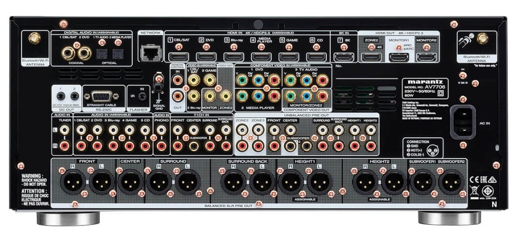 Nowy Marantz AV7706 zapewnia pełne spektrum możliwości łączności oferując osiem wejść i trzy wyjścia HDMI. Jedno dedykowane wejście 8K obsługuje rozdzielczość 8K/60Hz oraz 4K/120Hz, podczas gdy wszystkie inne wejścia obsługują 4K/60Hz, 4:4:4 Pure Color sub-sampling, Dolby Vision, HLG, HDR10, 3D, BT 2020 oraz najnowszy standard ochrony przed kopiowaniem HDCP 2.3. Wyposażony we wszystkie najnowsze technologie i specyfikacje HDMI, AV7706 umożliwia entuzjastom doświadczenie lepszych wrażeń z filmów, gier i telewizji dzięki HDR10+, Dynamic HDR, trybowi automatycznego niskiego opóźnienia (ALLM), zmiennej częstotliwości odświeżania (VRR), szybkiemu przełączaniu mediów (QMS ) oraz obsłudze szybkiego transportu ramek (QFT) na wszystkich wejściach. Procesor wideo może również przeskalować dowolne natywne źródło wideo do jakości 8K. Ponadto, AV7706 został wyposażony w funkcjonalność HDMI eARC, która przetwarza formaty dźwięku 3D, takie jak Dolby Atmos® i DTS:X® w mistrzowskiej jakości bezpośrednio ze źródła TV.