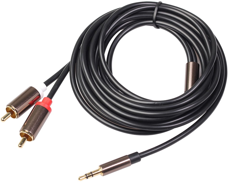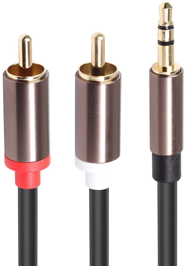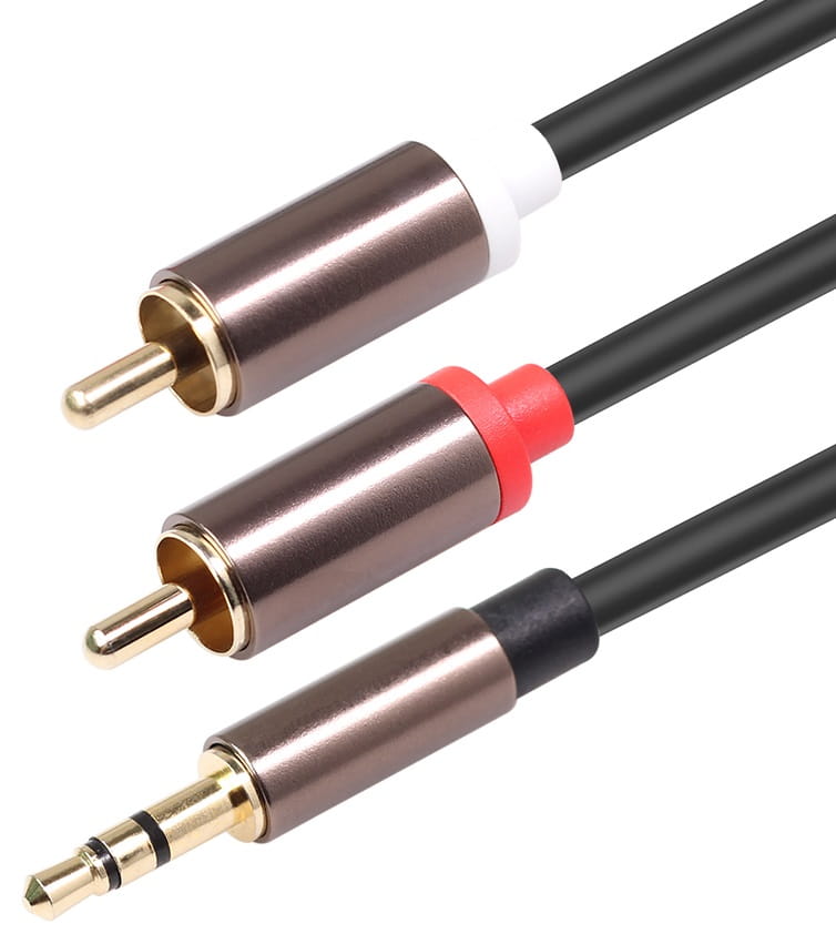 Niedrogi kabel do podłączenia dowolnego sprzętu muzycznego. Składa się z dwóch kabli mono zakończonych z jednej strony złączami RCA (męskimi), a z drugiej strony prostym złączem stereo TRS 1/8 (jack 3,5 mm). Co więcej złącza RCA są oznaczone kolorem – czerwony / biały. Wysokiej jakości przewód do przesyłania analogowego dźwięku pomiędzy urządzeniami przenośnymi (odtwarzacze MP3, smartfony), a wzmacniaczami audio lub amplitunerami.