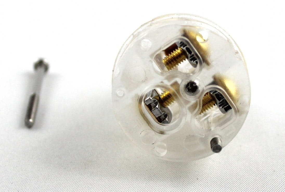 Złącze wykonane z mosiądzu pokrytego złotem. Obudowa przeźroczysta z naklejanym oznakowaniem marki.