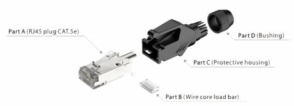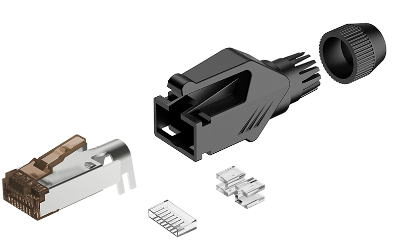 Kompatybilność - Wtyk RJ45 pasuje do standardowych gniazd RJ45. Średnica wewnętrzna tulei zaciskowej: 7,45mm. Możliwość znakowania kolorowym pierścieniem