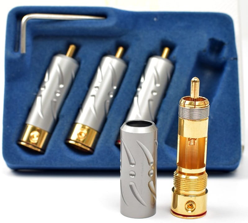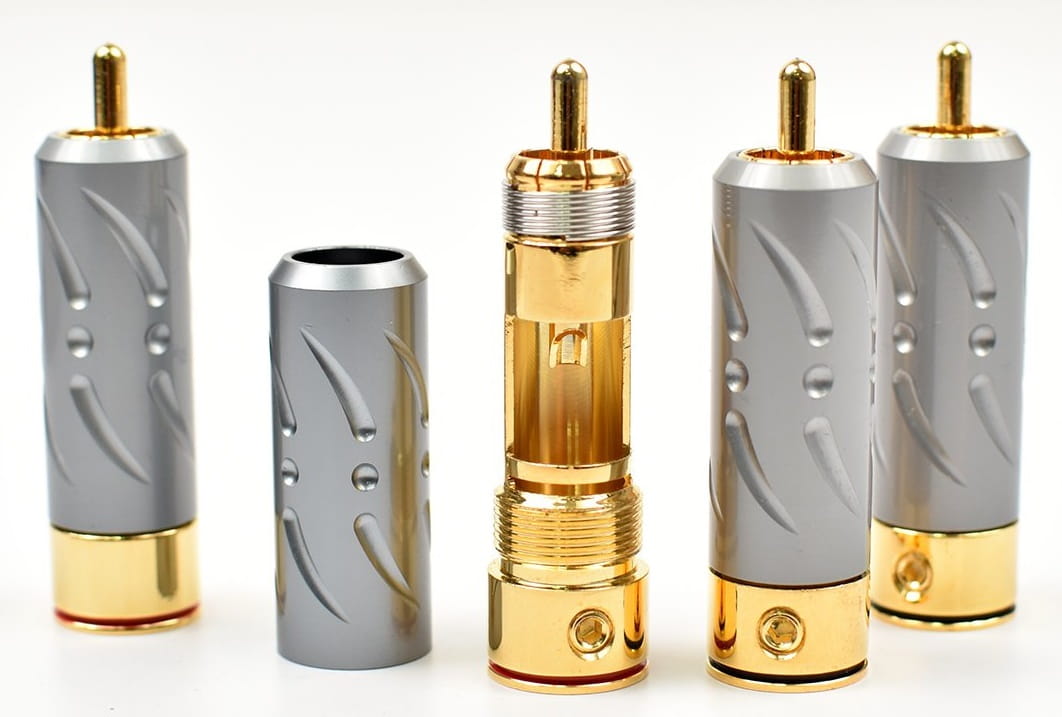 Najwyższej jakości wtyki RCA do konfekcji kabla Viborg VR109G. Elementy stykowe wykonane z czystej miedzi pokryte warstwą złota.