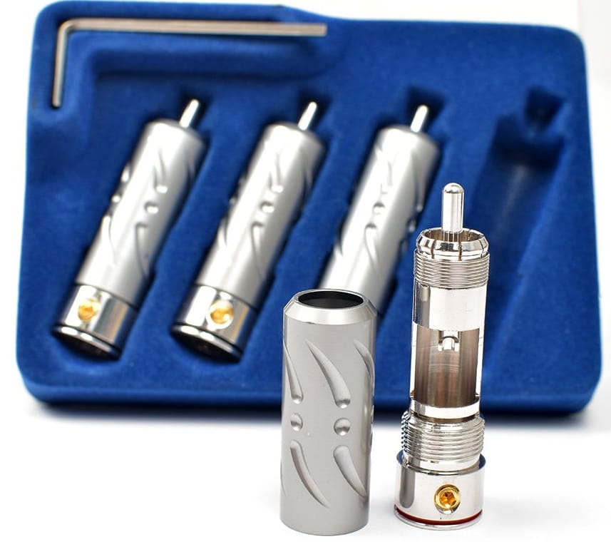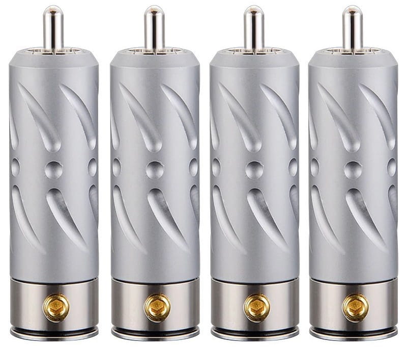 Najwyższej jakości wtyki RCA do konfekcji kabla Viborg VR109R. Elementy stykowe wykonane z czystej miedzi pokryte warstwą rodu.