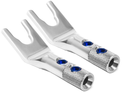 SPSL to widły głośnikowe state-of-the-art wykonane z niebywałą precyzją i elegancją. Po wielu testach odsłuchowych inżynierowie Oyaide wybrali czysty mosiądz na ich bazę i kombinację platyny oraz rodu, wykorzystaną do jego pokrycia. Główne body zostało wykonane z brązu fosforowego o średnicy 15 mm. Wycięto je na obrabiarce CNC, a następnie ręcznie polerowano. Do zaciśnięcia kabla użyto dwóch, wysokiej jakości stalowych śrub o średnicy 5 mm każda. Niebieskie wykończenie śrub jest tak pozostałością po obróbce utwardzającej powierzchnię stali, przy okazji nadaje jednak widłom niepowtarzalny wygląd.