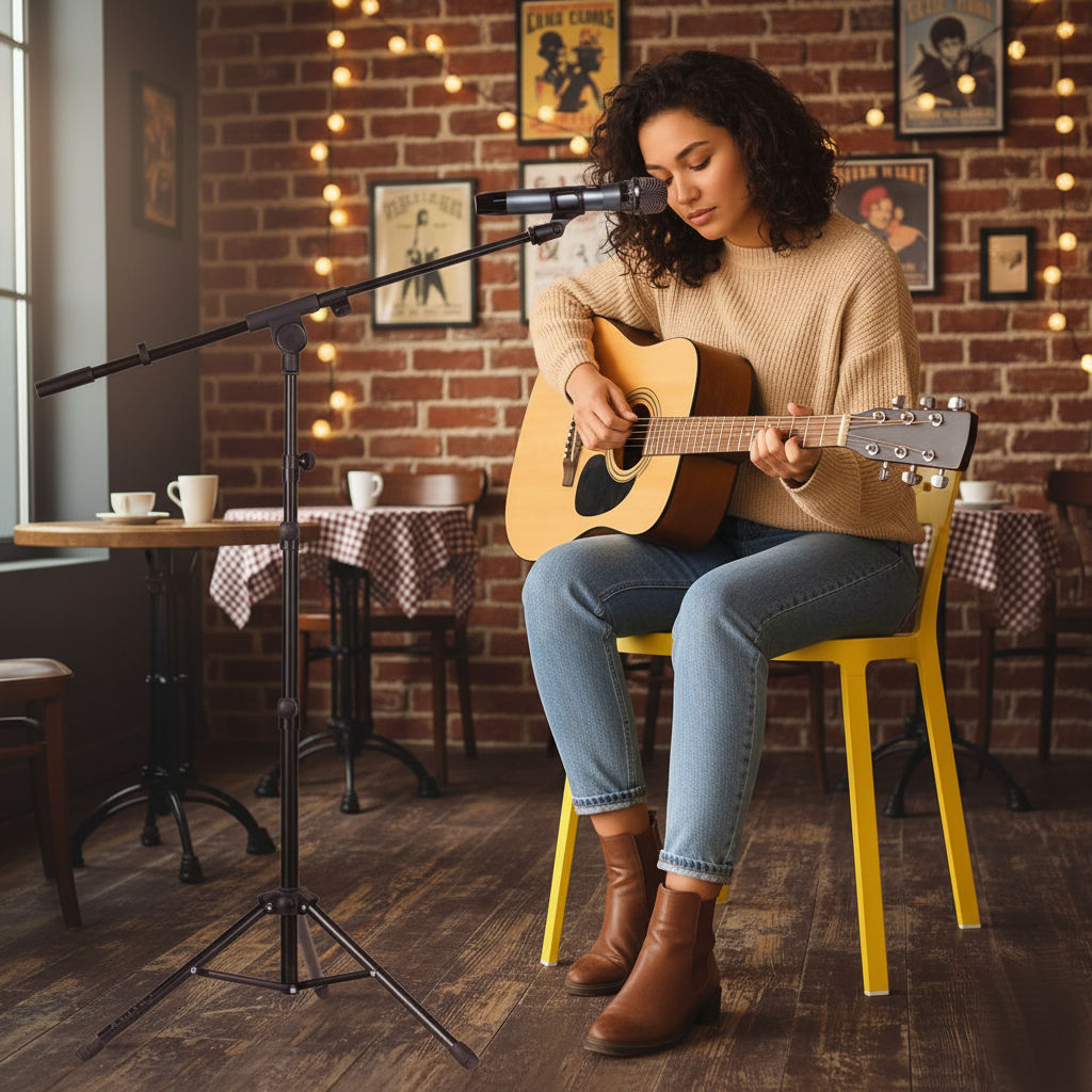 Mozos SM809 to wszechstronny statyw mikrofonowy, który został stworzony z myślą o wymagających użytkownikach – muzykach, podcasterach, lektorach, streamerach oraz realizatorach dźwięku. Dzięki szerokiemu zakresowi regulacji jest idealny zarówno do studia nagrań, jak i do mobilnych zastosowań scenicznych czy podcastowych. Statyw pozwala na precyzyjne ustawienie mikrofonu w wielu pozycjach, co gwarantuje wygodę pracy i wysoką jakość nagrań w każdych warunkach. Wertykalna kolumna regulowana w zakresie 54,5–146 cm zapewnia ogromną elastyczność, dzięki czemu statyw świetnie sprawdza się przy nagrywaniu wokali, instrumentów, podcastów i voice-overów. Dodatkowo regulowana belka poprzeczna o długości 40–75 cm umożliwia przesuwanie mikrofonu nad biurkiem, stołem, urządzeniami studyjnymi lub instrumentami, co pozwala na dokładne ustawienie pozycji nagrywania bez ograniczeń wynikających z przestrzeni. Jest to idealne rozwiązanie w studiach domowych, gdzie liczy się maksymalne wykorzystanie miejsca pracy. Uwaga: W zestawie znajduje się statyw Mozos SM809. Inne elementy mają ukazać jedynie przykładowe zastosowanie.