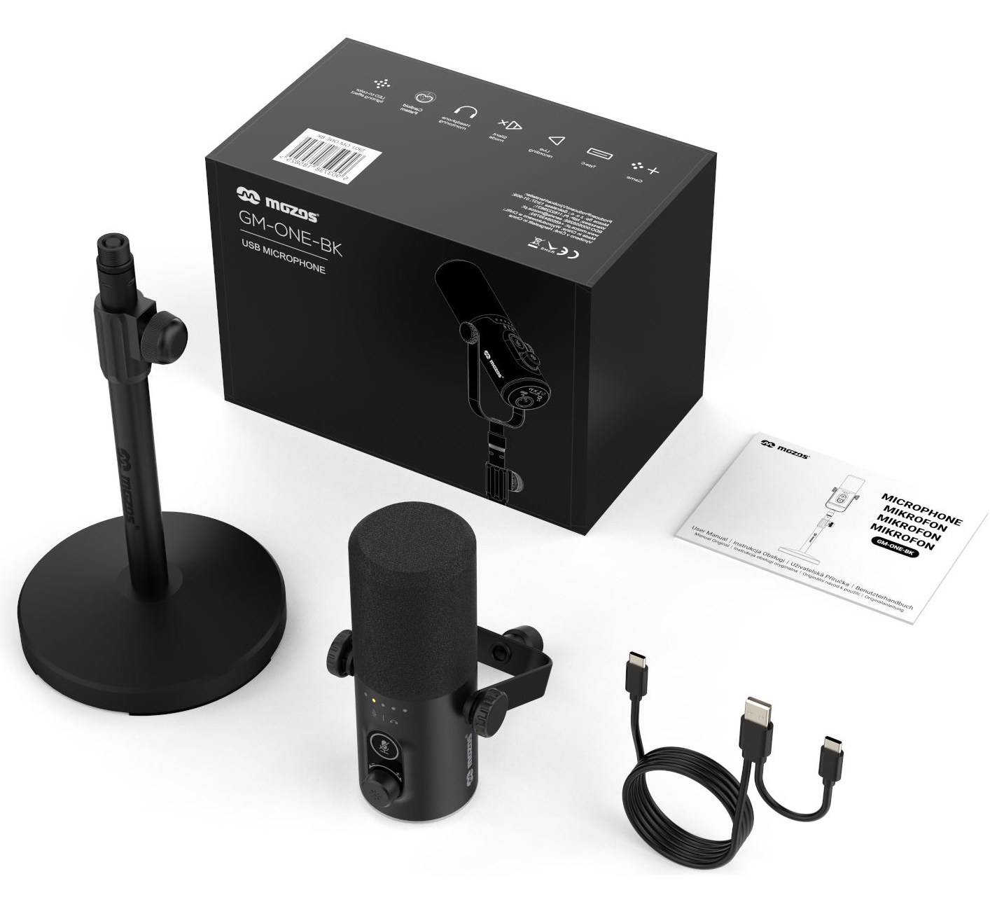 Mozos GM-ONE-BK – dynamiczny mikrofon studyjny z podwójnym wyjściem USB-C i XLR.