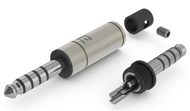 Wtyk złożony jest z pięciu pół (Tip, 3 x Ring i Sleeve), a poszczególne metalowe części oddzielone są od siebie izolacją z nylonu. Budowa wtyku daje łatwy dostęp do punktów lutowniczych, które ułożone są równolegle. Cztery metalowe elementy przewodnika (prawe, lewe, pozytywne, negatywne) mają dodatkowo to samo pole przekroju.