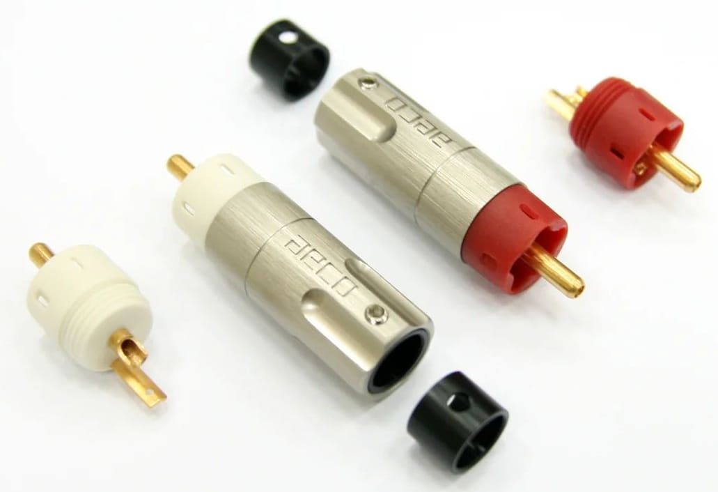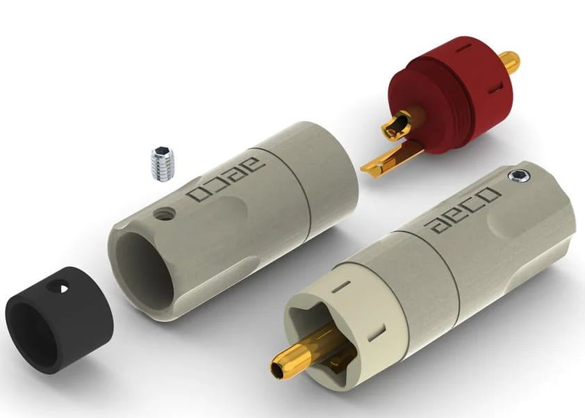 aeco ARP-4045 to zestaw wysokiej jakości wtyków RCA firmy z Tajwanu, które wyróżniają się stylowym wzornictwem oraz powalającą jakością wykonania. Oparto je na przewodniku z pozłacanej miedzi tellurowej o wysokiej czystości. Mają one centralny pin, na którym wtryskowo formowany został korpus z nylonu wzmocnionego włóknem szklany o charakterystycznym kształcie (na planie pięcioramiennej gwiazdy). Pin dla uziemienia ma zredukowaną wielkość w celu punktowego odprowadzania masy z powierzchni gniazda. Wtyki ARP-4045 to ponadto eleganckie obudowy z mosiądzu z logotypem aeco wygrawerowanym na szczotkowanej, niklowanej satynowej powierzchni.