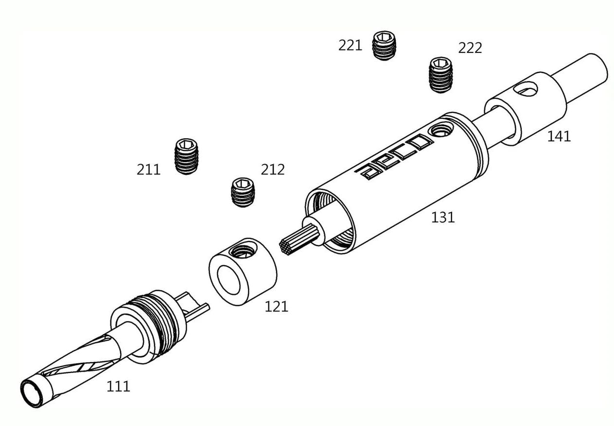 Główna część wtyków bananowych marki aeco wykonana jest z tellurowej miedzi o wysokiej czystości i wytoczona w postaci jednego kawałka, co umożliwia uniknięcie strat przy przesyle sygnału przez materiały o różnej strukturze. Wtyki mają unikatowe, spiralne wycięcia, a do tego są odizolowane od obudowy za pomocą specjalnie wybranego tworzywa sztucznego POM.
