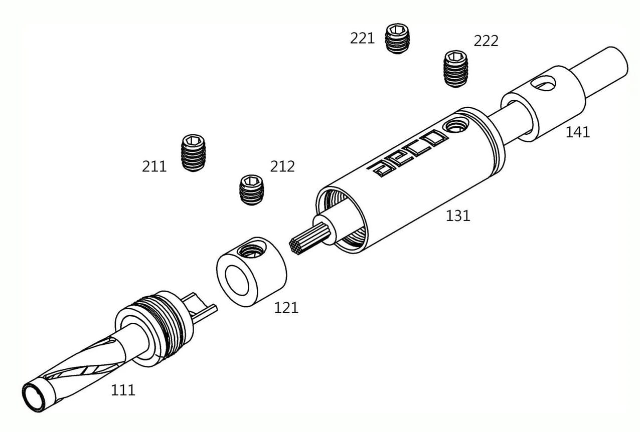 - ABP-1111R przygotowano dla kabli o średnicy mniejszej niż 6,3 mm. Należy usunąć tylny pierścień (element 141), gdy średnica przewodu jest większa niż 4,3 mm.