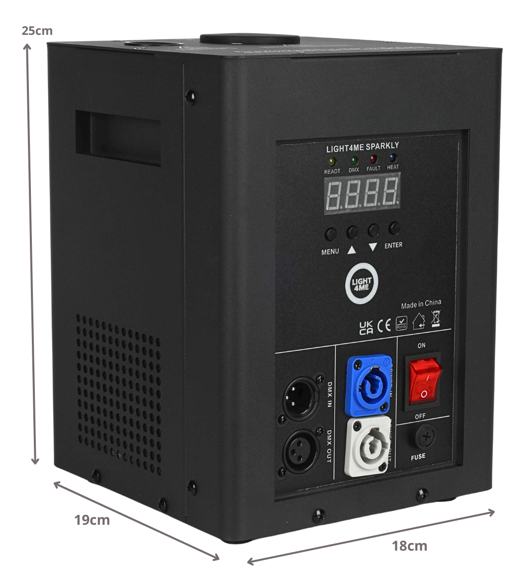 Wytwornica maszyna do iskier zimnych ogni 600W DMX pilot bezprzewodowy wysokość emisji do 5 m - LIGHT4ME SPARKLY | RATY 0% | SALA ODSŁUCHOWA POZNAŃ