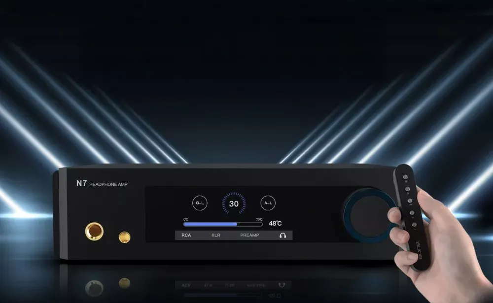 Aune N7D (DAC Edition) to w pełni zbalansowany wzmacniacz słuchawkowy w klasie A z wyjściami 6.35 mm i 4.4 mm oraz wbudowanym układem DAC na dwóch kościach Cirrus Logic CS43198. Model ma dyskretny obwód z tranzystorami JFET o mocy do 6500 mW, elektroniczny system kontroli głośności R2R, dwa poziomy wzmocnienia, dwa stopnie natężenia prądu i może pełnić rolę przedwzmacniacza w klasie A.