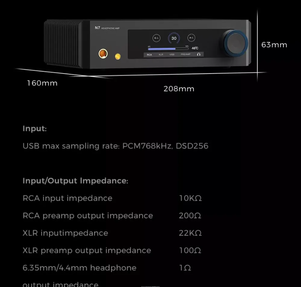 Wzmacniacz słuchawkowy N7 ma specjalnie zaprojektowaną, dwustopniową kontrolę prądu klasy A dla stopnia wyjściowego. Dzięki temu wzmacniacz na wyjściu operuje w prawdziwej klasie A, co przekłada się na jedwabiście gładki, pełnym i ocieplony dźwięk, który czaruje tonalnością.
