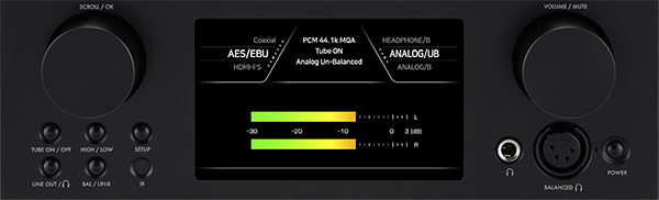 5-calowy ekran TFT LCD umieszczony z przodu pomoże w obsłudze HA500H. W łatwy i czytelny sposób pokazuję informację z urządzenia. Mierniki VU pokazuje precyzyjny pomiar z klasycznym wyczuciem, który idealnie pasuje do ciepłego, analogowego tonu lamp.