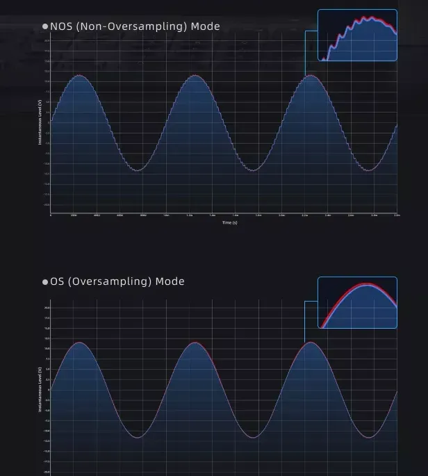 - Intuicyjna obsługa: Urządzenie jest wyposażone w wyświetlacz OLED z intuicyjnym interfejsem, który ułatwia nawigację po ustawieniach. Pełny pakiet filtrów cyfrowych pozwala dostosować dźwięk do preferencji użytkownika, a aplikacja FiiO Control umożliwia tworzenie własnych profili poprzez parametryczny EQ.