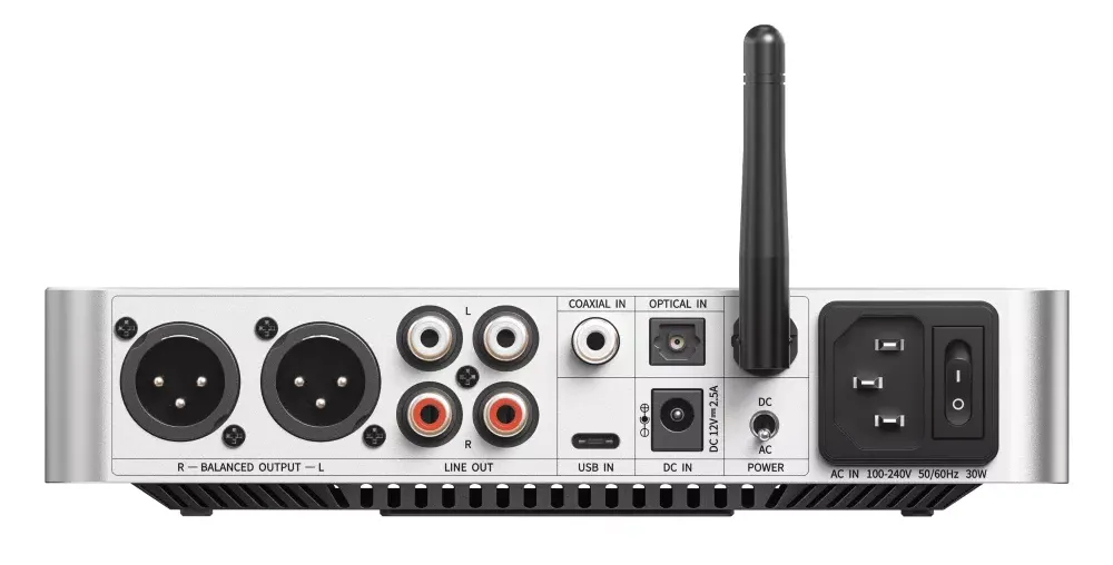 - Audiofilska konstrukcja: Cała obudowa została wykonana z aluminium, co zapewnia trwałość i efektywne odprowadzanie ciepła. Precyzyjne komponenty, takie jak niskoszumowe stabilizatory LDO, kondensatory klasy premium oraz podwójne niezależne zasilacze, gwarantują stabilność i czystość sygnału.