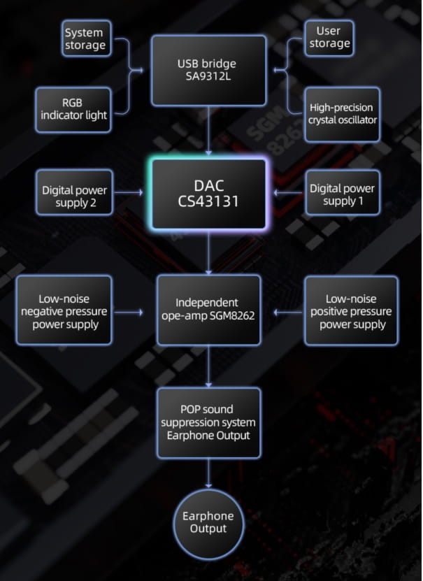 • wysokowydajny przetwornik cyfrowo-analogowy i wzmacniacz operacyjny, precyzyjny oscylator kwarcowy, a także niezależny zasilacz są połączone w specjalnie zaprojektowanym obwodzie audio, który pozwala KA11 bez wysiłku raczyć słuchacza znakomitym brzmieniem