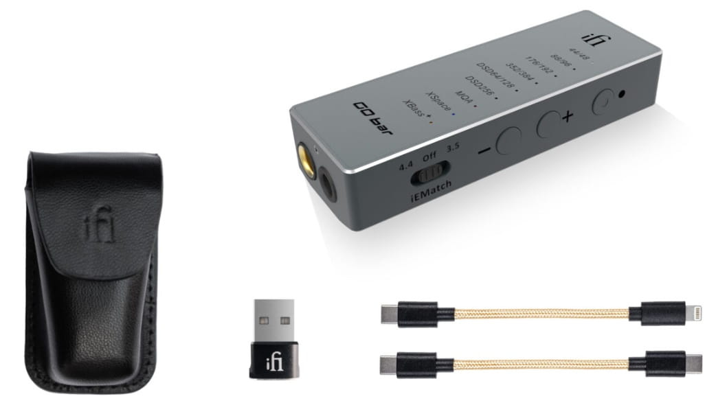 Zarówno standardowy GO Bar, jak i edycja rocznicowa są dostarczane z bogatym pakietem akcesoriów. Użytkownicy Apple pokochają wykonany przez iFi kabel Lightning. Tymczasem użytkownicy Androida docenią kabel USB-C OTG, którego można również używać z komputerami PC i Mac wyposażonymi w USB-C; w zestawie znajduje się również przejściówka z USB-C na USB-A. Do tego skórzane etui.