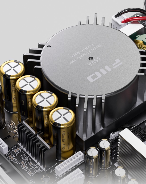 Sekcje wewnętrznego zasilania oraz sekcje cyfrowe i analogowe znajdują się na fizycznie oddzielonych płytkach drukowanych, aby uniknąć zakłóceń między nimi. Zapewnia to dokładność i integralność przetwarzania sygnału dla czystszego, doskonalszego wyjścia audio.