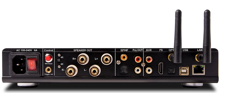 Omnia A300SE wyposażono w liczne wejścia cyfrowe i analogowe. Obsługuje sygnał cyfrowy poprzez wejście USB w jakości 24-bit/384 kHz i DSD256, a HDMI IIS aż do 32-bit/768 kHz. Oprócz tego do dyspozycji mam wejście koaksjalne, optyczne oraz liniowe 2x RCA. Z tyłu mamy też do dyspozycji wyjście 2x RCA Pre Out do którego można podłączyć subwoofer. To wszystko sprawia, że jest to wszechstronny wzmacniacz. Omnia A300SE w stosunku do poprzednika A300 otrzymała dodatkową funkcję AirPlay 2 i zmianę koloru obudowy na klasyczny czarny.