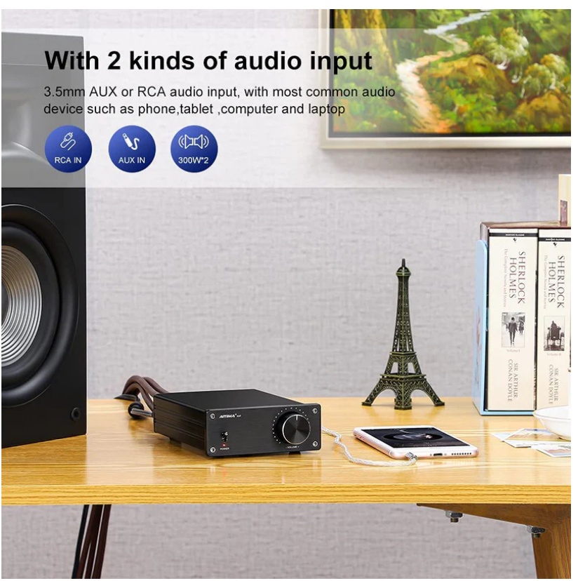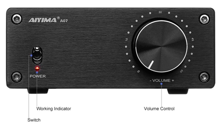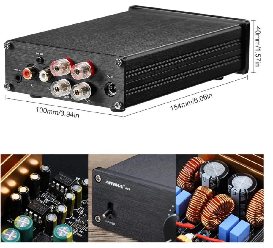 AIYIMA A07 wzmacniacz zintegrowany o niewielkich rozmiarach w wydajnej klasie D. Proponowana moc wzmacniacza wystarczy dla melomanów i do wysterowania podstawowych i średnich zestawów audio.