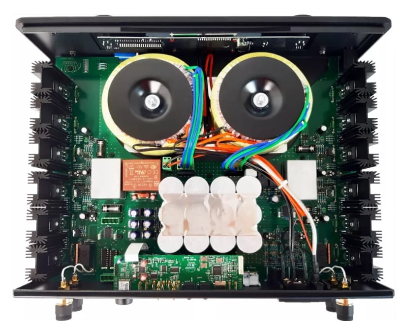 - Dwa transformatory toroidalne: 440 VA (audio) + 10 VA (logika sterująca)