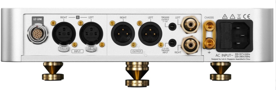 | Funkcje / wyposażenie | Sterowany mikroprocesorowo tłumik PMDR w 60 krokach (±1 dB/krok) z cichym sprzęgłem optycznym. Prawdziwie zbalansowany, Dyskretny przedwzmacniacz w klasie A z buforem. Prawdziwie zbalansowany wzmacniacz słuchawkowy z autorskim dyskretnym stopniem mocy opa |