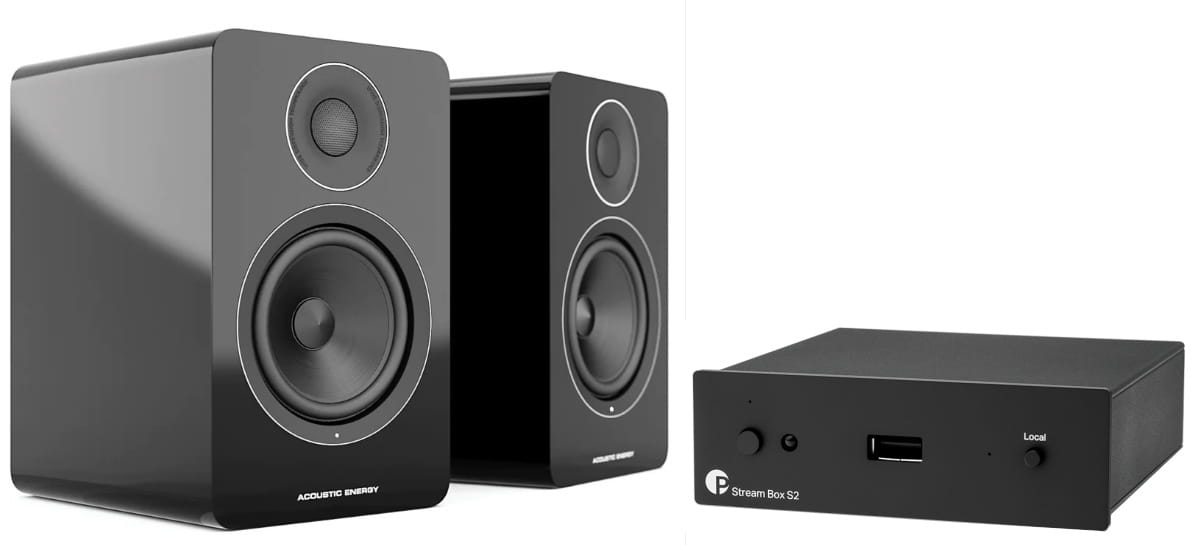 Zestaw - Kolumna podstawkowa - Acoustic Energy AE1 Active Black Piano + Kompaktowy odtwarzacz strumieniowy z funkcją Multiroom - Project Stream Box S2 Czarny | RATY 0% | SALA ODSŁUCHOWA POZNAŃ