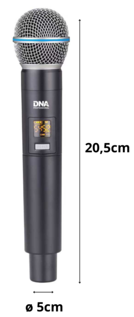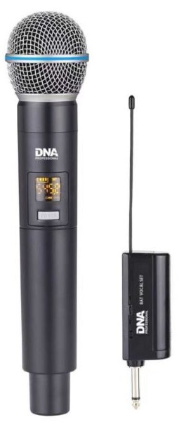 Zestaw bezprzewodowy akumulatorowy mikrofon doręczny odbiornik UHF 518-542 MHz pierścień przeciw toczeniu adapter jack 6,35 mm - jack 3,5 mm 2x osłona przeciwwietrzna - DNA BAT VOCAL SET | RATY | SALA ODSŁUCHOWA POZNAŃ