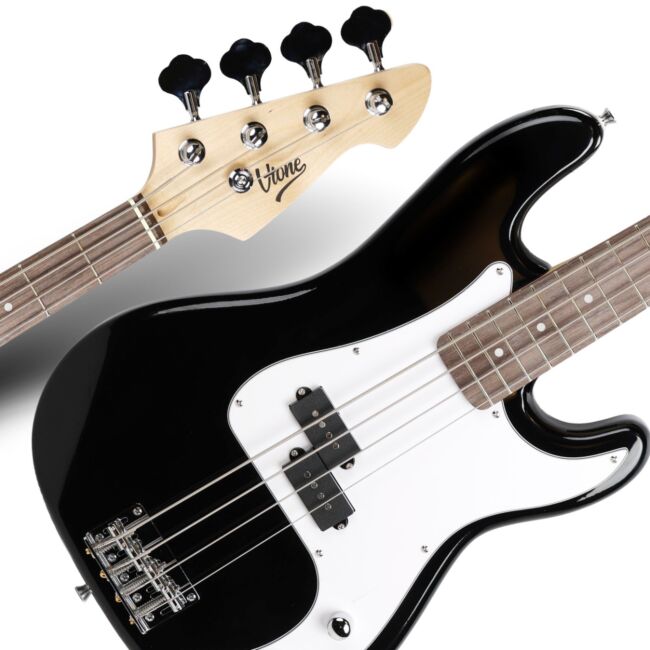 Zestaw gitarowy gitara basowa PB 46" combo basowe 15W statyw tuner pasek kostki do gry przewód gitarowy pokrowiec klucze do regulacji - V-TONE PBB46 BK SET | RATY | SALA ODSŁUCHOWA POZNAŃ