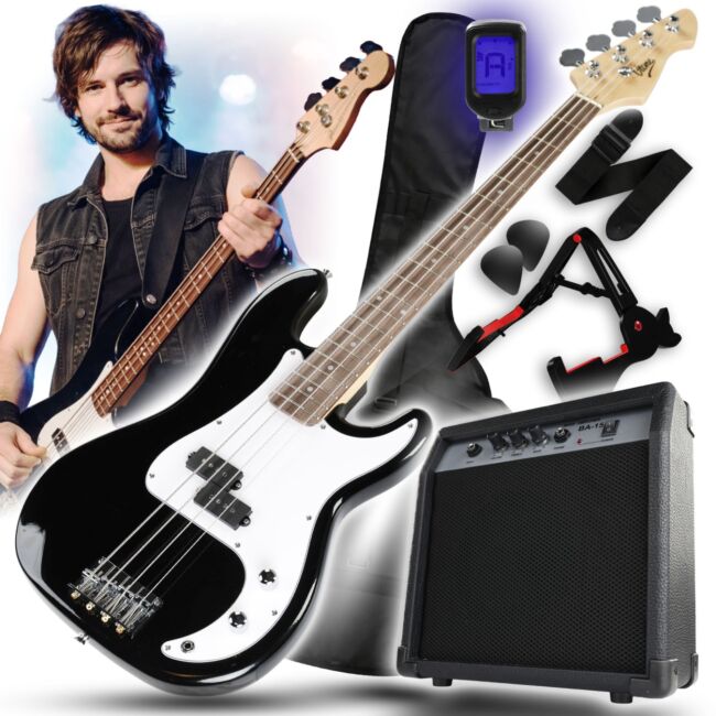 To zestaw, który pozwala zacząć grać od razu po rozpakowaniu ✔️ Dostajesz gitarę Precision Bass 4/4, combo 15W, tuner clip-on, pokrowiec, pasek, przewód, 2 kostki gitarowe i statyw ✅ Klasyczny układ P-B, 4 stalowe struny, stały chromowany mostek i otwarte klucze wspierają stabilne codzienne użytkowanie. Wybierz rozwiązanie używane przez początkujących basistów, którzy chcą ćwiczyć wygodnie i od pierwszego dnia słyszeć własny groove.