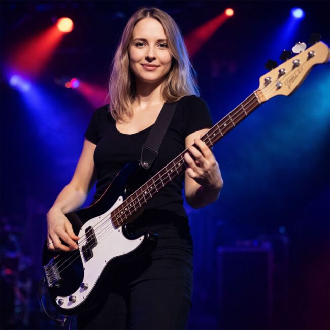 Daje klasyczne, zwarte brzmienie basowe. Taki charakter dźwięku dobrze pasuje do nauki rytmu, prostych riffów i pierwszych partii granych z podkładem lub zespołem.