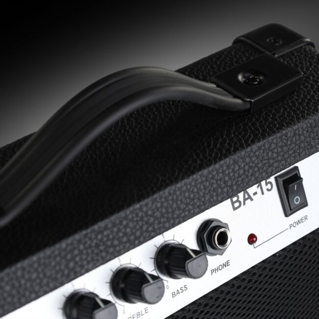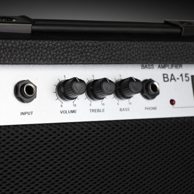 Dołączone combo basowe 15W pozwala ćwiczyć bez dokupowania osobnego pieca ✅ Głośnik 6,5" dobrze sprawdza się w domu, sali ćwiczeń i na spokojnych próbach, gdzie ważna jest kontrola nad dźwiękiem i szybkie ustawienie sprzętu ✨ Masz do dyspozycji pokrętła VOLUME, BASS i TREBLE, więc łatwo ustawisz bardziej miękkie lub jaśniejsze brzmienie. Dodatkowe wyjście słuchawkowe ułatwia trening wtedy, gdy nie chcesz przeszkadzać domownikom.