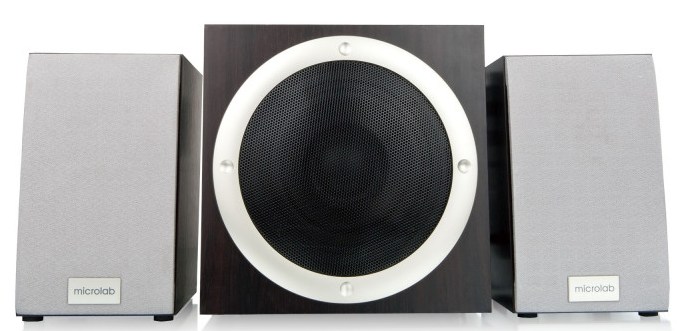 System audio 2.1: dwa głośniki satelitarne + subwoofer