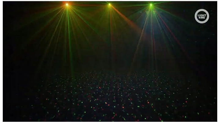 Multiefekt posiada dwa reflektory led par wyposażone w trzy mocne, 4-watowe diody, oraz dwa efekty derby – każdy z ośmioma 3-watowymi diodami LED. Wszystkie urządzenia operują światłem w palecie barw RGBW. Piątym efektem jest w pełni bezpieczny laser o całkowitej mocy 150 mW, operujący czerwoną i zieloną wiązką światła. Wszystkie urządzenia przymocowane są do poprzecznej listwy za pomocą uchwytów montażowych, dzięki którym posiadają szeroki zakres ruchów w płaszczyźnie poziomej i pionowej. Zasilanie oraz sygnały sterujące jednostkami podawane są do urządzeń bezpośrednio z listwy za pomocą krótkich przewodów i dokręcanych złączy DIN. W tylnej części belki znajduje się gniazdo zasilania typu IEC, wejście i wyjście XLR umożliwiające kontrolowanie efektów poprzez protokół DMX, oraz łatwy w obsłudze panel sterowania z cyfrowym wyświetlaczem LED i czterema przyciskami. Za ich pomocą możemy wybrać jeden z kilku oferowanych przez system trybów pracy: