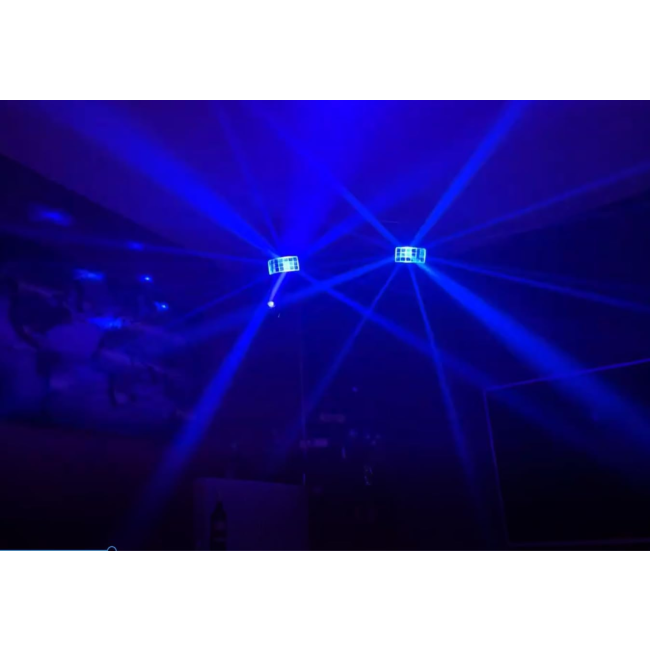 | Źródło światła | głowice ruchome: 2x30W LED efekt derby: 4x10W RGBW LED efekt białego stroboskopu: 4x3W W LED efekt par: 14x2W RGBW LED |