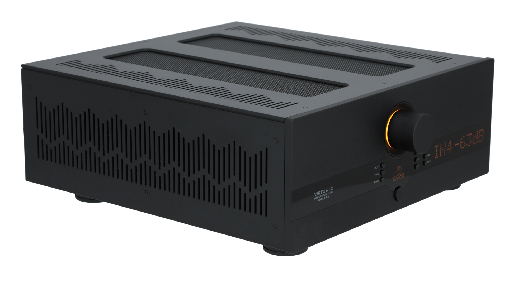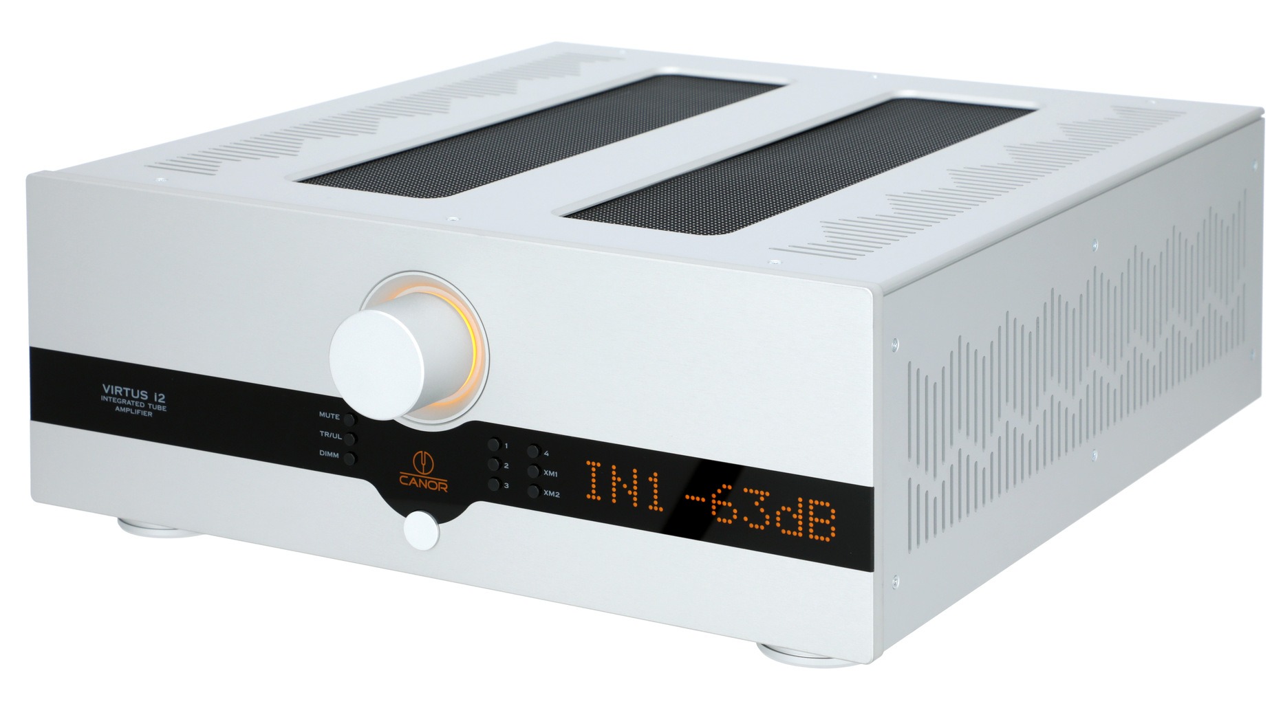 Canor Audio Virtus I2 z linii Premium to zintegrowany wzmacniacz lampowy nowej generacji, który pracuje w czystej klasie A z funkcją automatycznego odchylenia (auto-bias) i katodowym sprzężeniem zwrotnym (cathode feedback). Zapewnia moc wyjściową 2 x 40W, wykorzystuje lampy dużej mocy KT88 i charakteryzuje się nową topologią