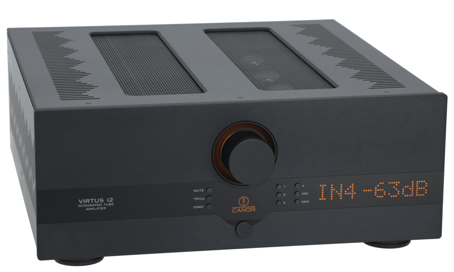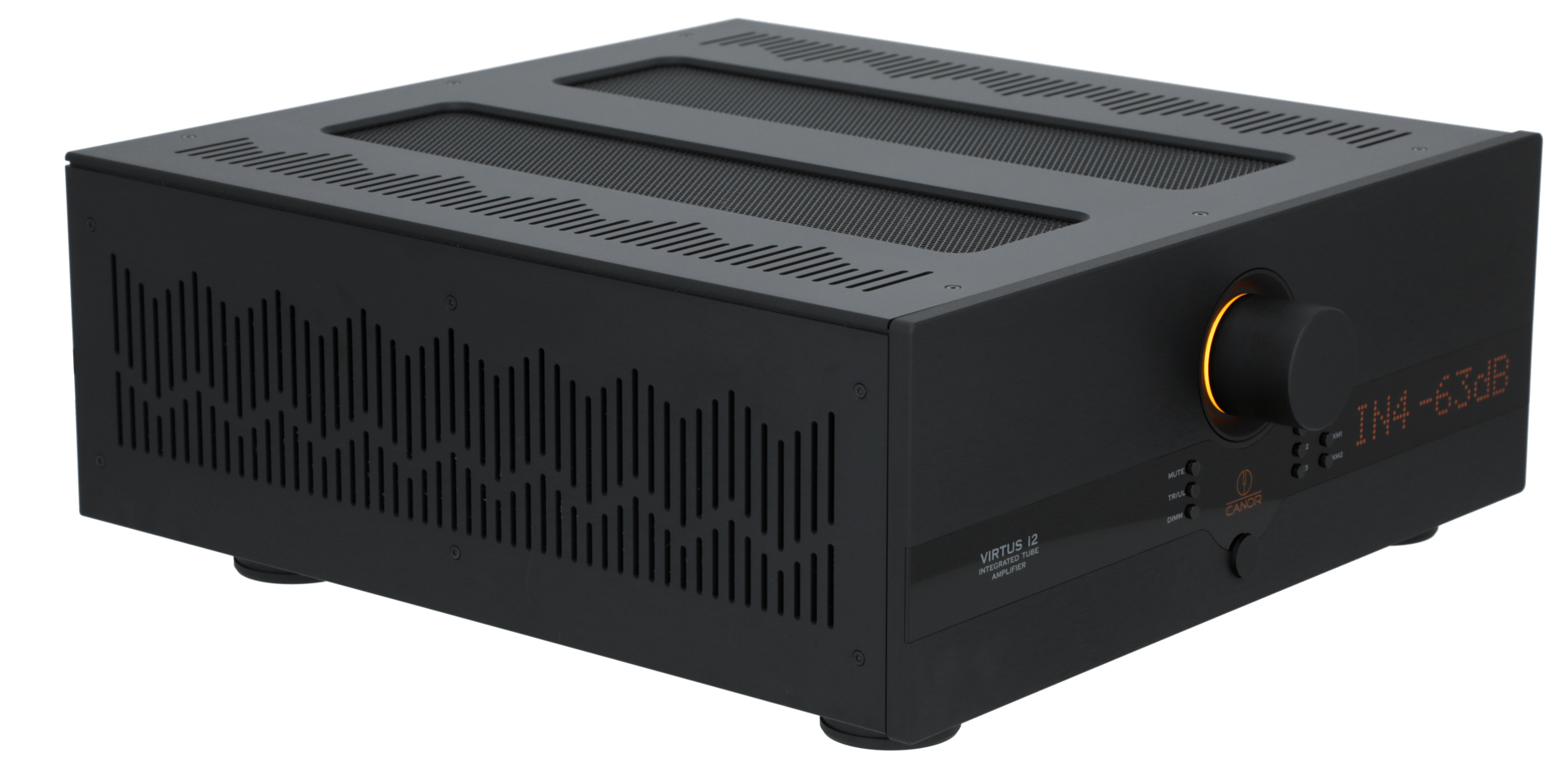 Canor Audio Virtus I2 z linii Premium to zintegrowany wzmacniacz lampowy nowej generacji, który pracuje w czystej klasie A z funkcją automatycznego odchylenia (auto-bias) i katodowym sprzężeniem zwrotnym (cathode feedback). Zapewnia moc wyjściową 2 x 40W, wykorzystuje lampy dużej mocy KT88 i charakteryzuje się nową topologią
