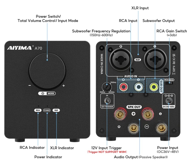 Zintegrowany zbalansowany wzmacniacz z dedykowanym zasilaczem - AIYIMA A70 | RATY 0% | SALA ODSŁUCHOWA POZNAŃ