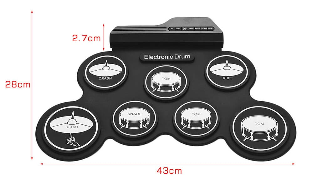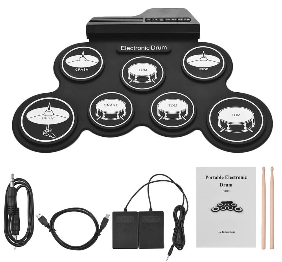 | W zestawie | 1 x Roll Up Drum 2 x Pałki do perkusji 2 x Pedał do perkusji 1 x Kabel zasilający USB 1 x Kabel audio 1 x Instrukcja użytkownika |